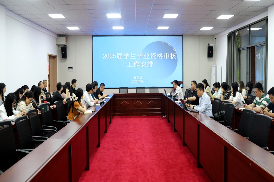 为保障2025届毕业生工作规范有序开展,5月13日上午,教务处在求真楼F107会议室召开2025年毕业资格、学位资格审查工作布置会。各学院负责人、学工办主任、毕业班辅导员及教学秘书参加会议。