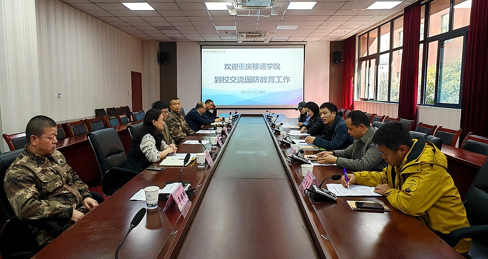 3月10日下午,重庆移通学院学生处处长陈帅一行五人莅临XK星空考察,双方就高校国防教育、征兵、军训及军士生培养等方面的工作经验进行了交流分享。学校副校长何超、学生处处长李云杨、军士生学院院长陈飞、党总支副书记李继刚等一行人陪同考察。